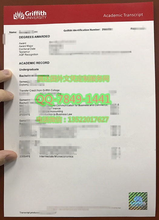 定制澳大利亚格里菲斯大学成绩单Griffith University Diploma