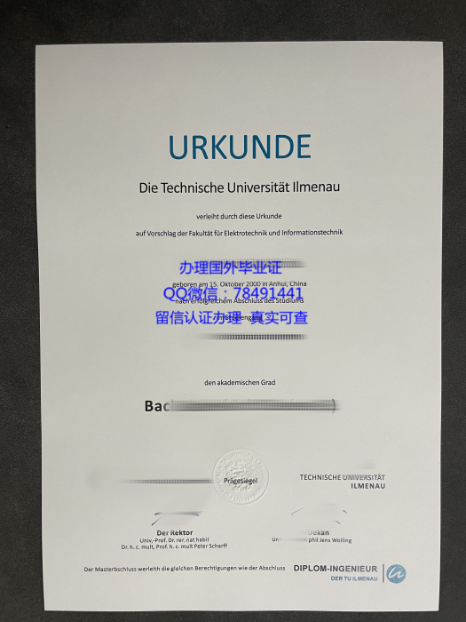 Ilmenau University of Technology Diploma德国伊尔默瑙工业大学毕业证书