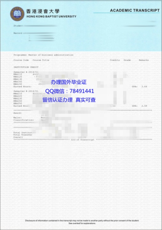 - 定制香港浸会大学成绩单Hong Kong Baptist University