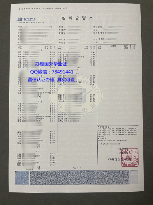 定制韩国檀国大学成绩单Dankook University Diploma