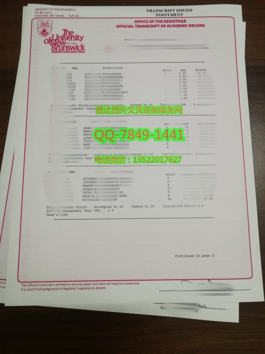 定制加拿大纽布伦斯威克大学成绩单University of New Brunswick Diploma