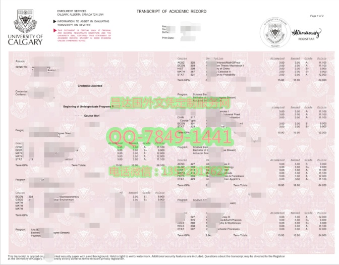 定制加拿大卡尔加里大学成绩单University of Calgary Diploma