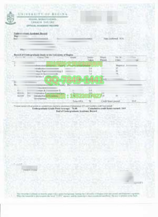 定制加拿大里贾纳大学成绩单University of Regina Diploma