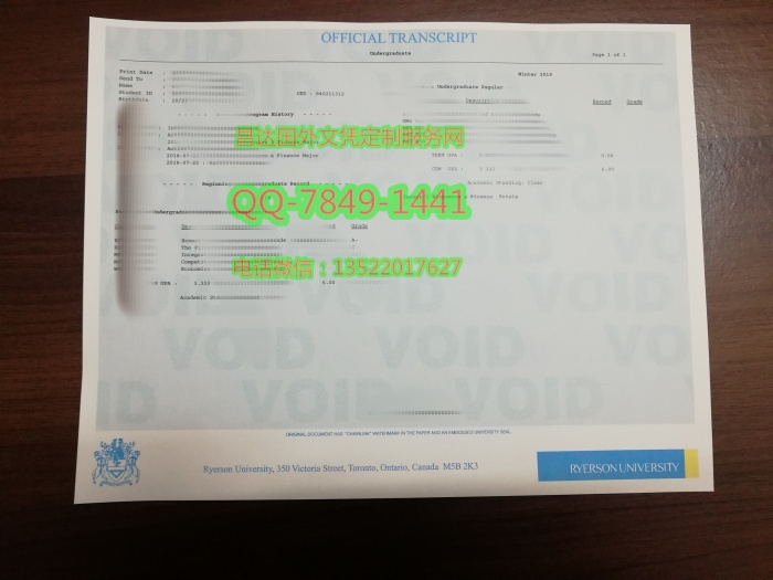 定制加拿大瑞尔森大学成绩单Ryerson University Diploma
