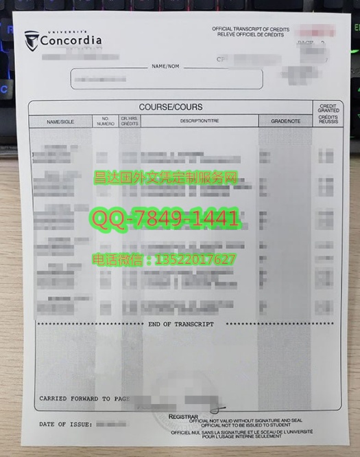 定制加拿大康考迪亚大学成绩单Concordia University Diploma