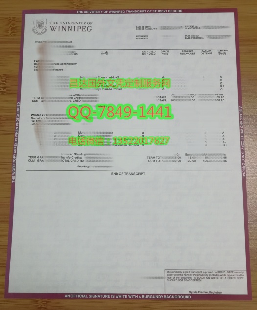 定制加拿大温尼伯大学成绩单The University Of Winnipeg Diploma