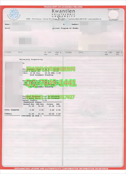 定制加拿大昆特兰理工大学成绩单Kwantlen Polytechnic University Diploma