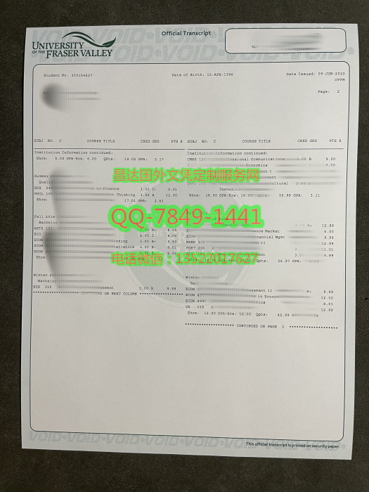 定制加拿大菲莎河谷大学成绩单University of the Fraser Valley Diploma