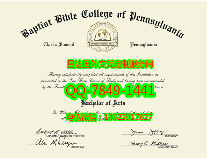 Baptist Bible College Diploma美国浸会圣经学院毕业证书