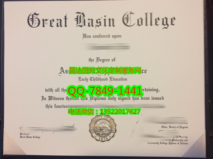 Great Basin College Diploma美国大盆地学院内华达大学分校毕业证书