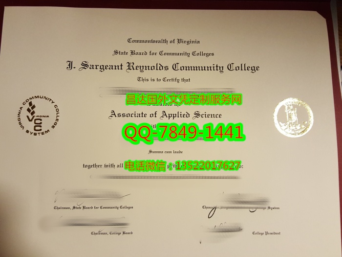 J. Sargeant Reynolds Community College Diploma美国萨金特雷诺兹社区学院毕业证书