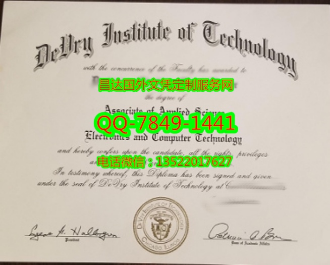 DeVry Institute of Technology Diploma美国德外尔理工学院毕业证书