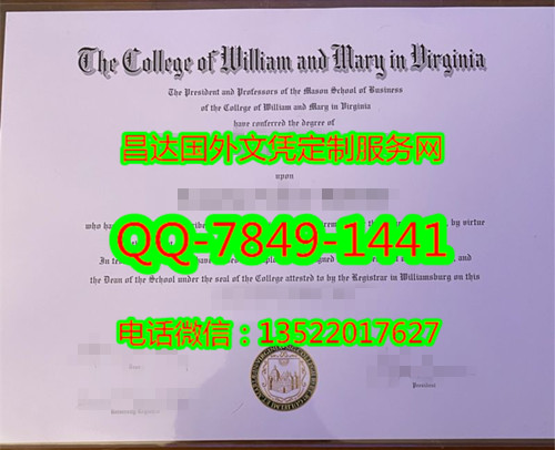 The College of William and Mary in Virginia Education Diploma美国威廉玛丽学院毕业证书