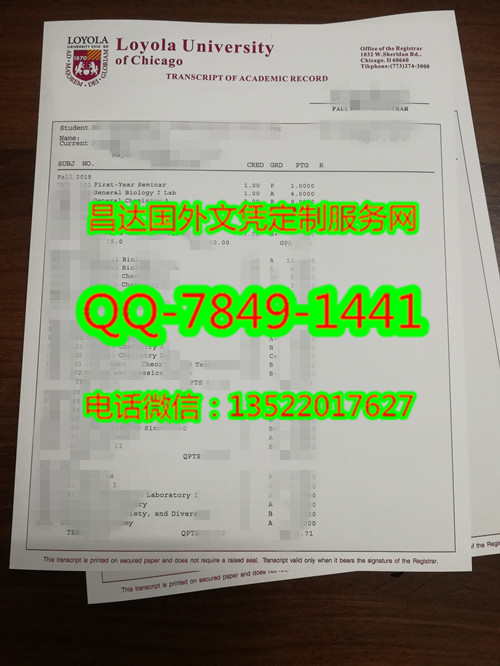 定制美国芝加哥洛约拉大学成绩单Loyola University Chicago Diploma