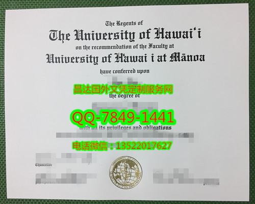 University of Hawaii at Manoa Diploma美国夏威夷大学马诺阿分校毕业证书