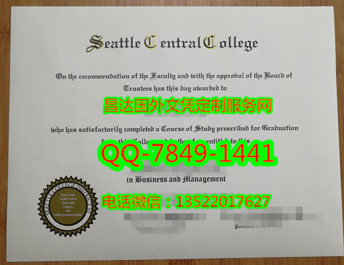 Seattle Central College Diploma美国西雅图中央社区学院毕业证书