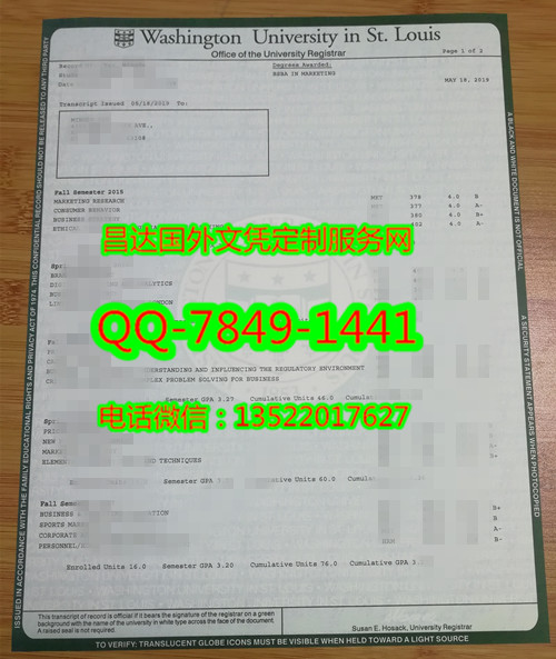 定制美国圣路易斯华盛顿大学成绩单Washington University IN St. Louis Diploma