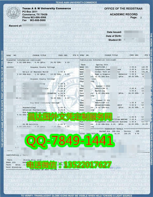 定制德克萨斯农工大学康莫斯分校成绩单Texas A&M University-Commerce Diploma