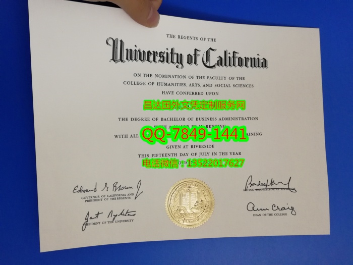University of California, Riverside Diploma美国加州大学河滨分校毕业证书