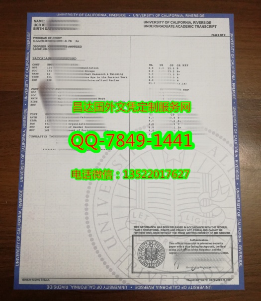 定制美国加州大学河滨校区成绩单University of California, Riverside Diploma