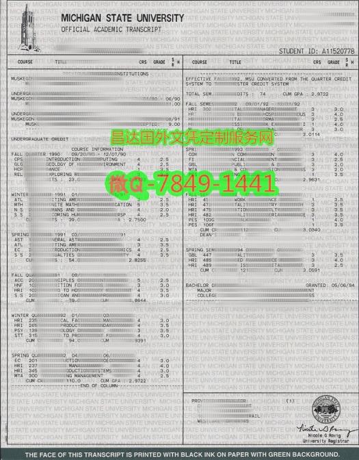- 定制美国密歇根州立大学成绩单Michigan State Univers