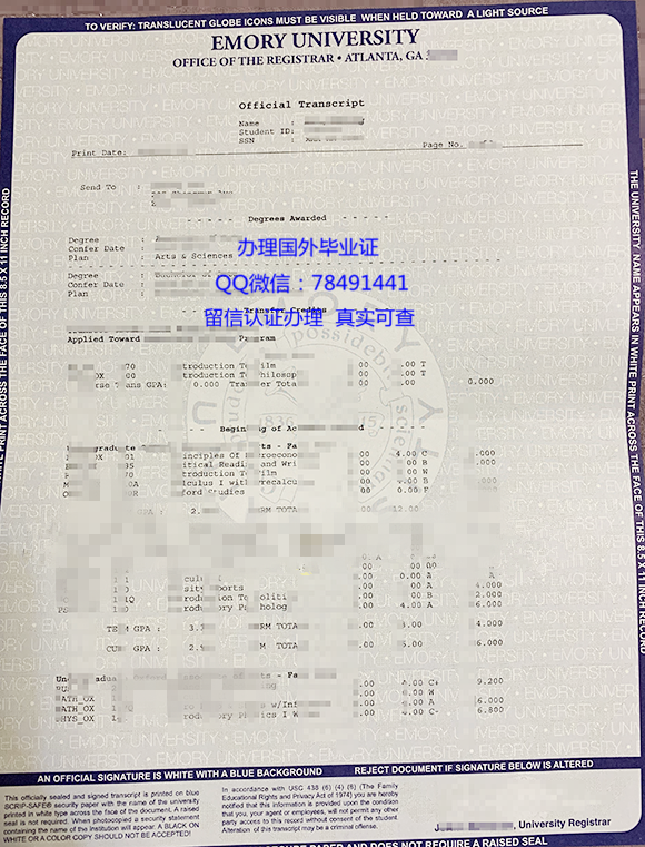 - 定制美国埃默里大学成绩单Emory University Diploma
