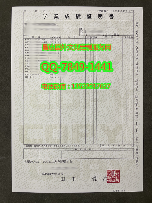 - 定制日本早稻田大学成绩单Waseda University Diploma