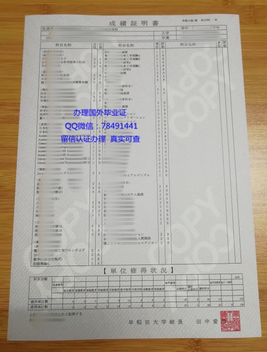 - 定制日本早稲田大学成绩单Waseda University Diploma