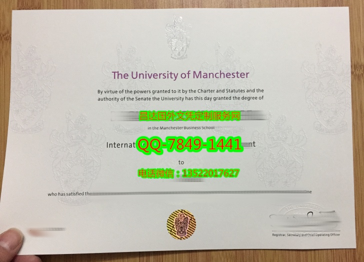 The University of Manchester Diploma英国曼彻斯特大学毕业证书