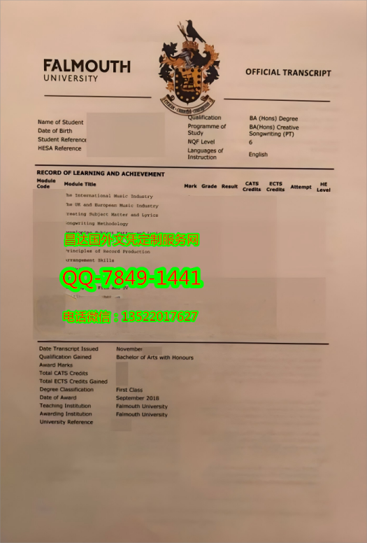 定制英国法尔茅斯大学成绩单Falmouth Universit Diploma