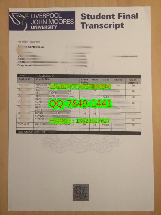 定制英国利物浦约翰摩尔斯大学成绩单Liverpool John Moores University Diploma