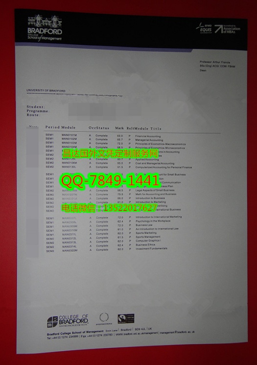 定制英国布拉德福德大学成绩单University of Bradford Diploma