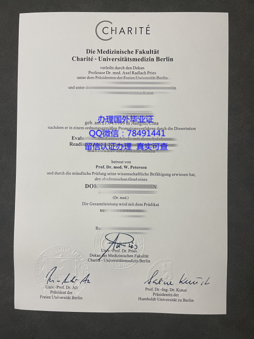 Charité – Universitätsmedizin Berlin Diploma德国柏林夏里特医学院毕业证书