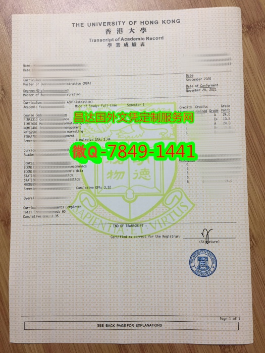 - 定制香港大学成绩单University of Hong Kong Diploma
