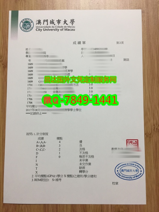 - 定制澳门城市大学成绩单City University of Macau Dip