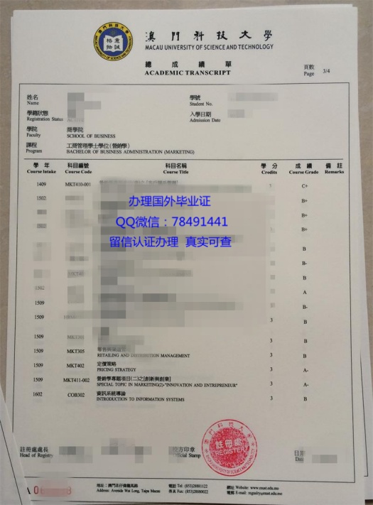 定制澳门科技大学成绩单Macau University of Science and Technology Diploma