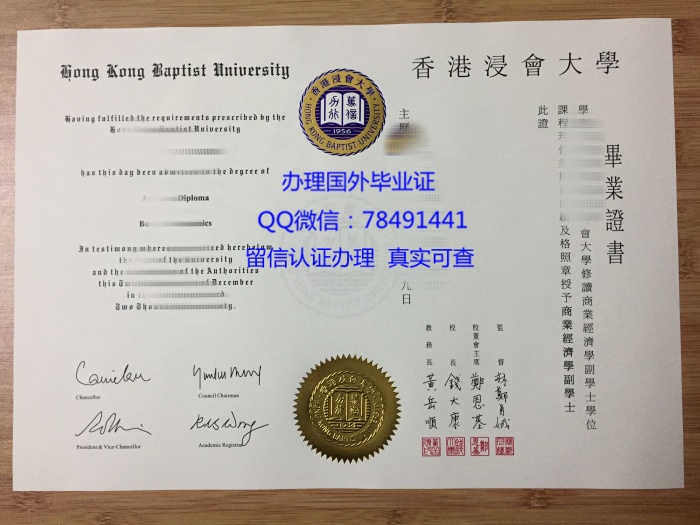 Hong Kong Baptist University Diploma香港浸会大学毕业证书