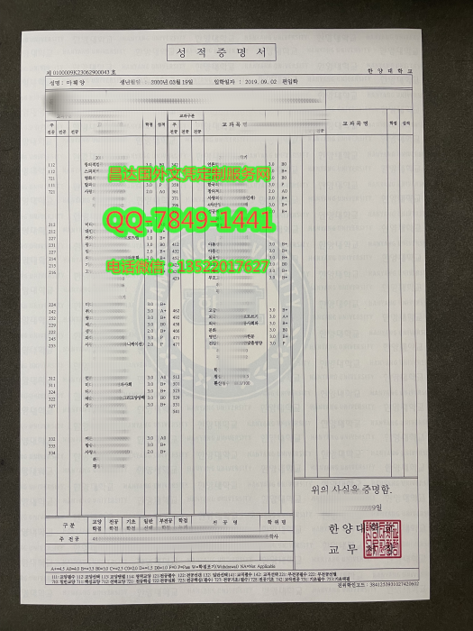 定制韩国汉阳大学成绩单Hanyang University Diploma