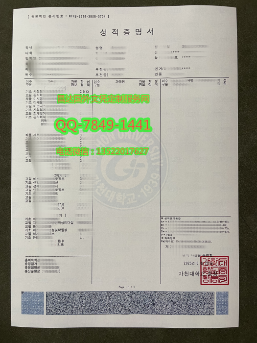 定制韩国嘉泉大学成绩单Gachon University Diploma