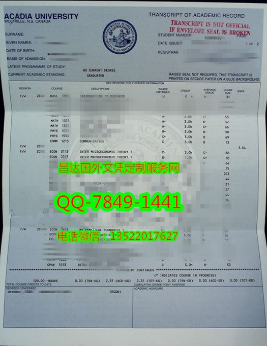 定制加拿大阿卡迪亚大学成绩单Acadia University Diploma