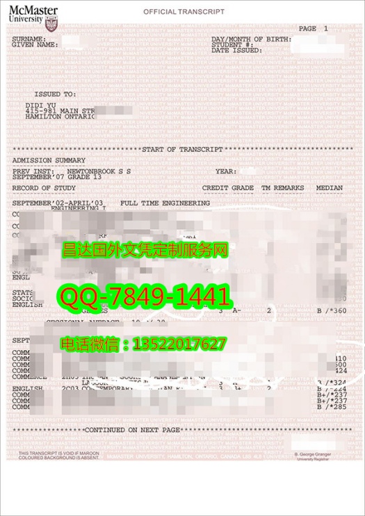 定制加拿大麦克马斯特大学成绩单McMaster University Diploma