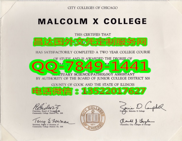 Malcolm X College Diploma芝加哥城市学院马尔科姆X学院毕业证书
