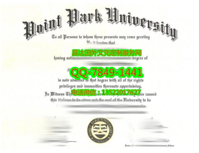 Point Park University Degree Certificate Diploma美国博恩特帕克大学毕业证