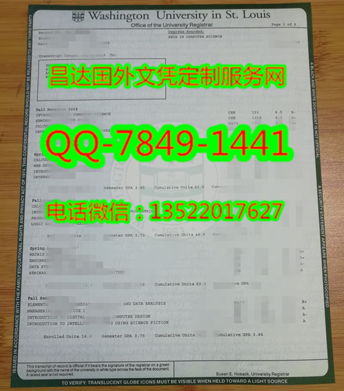 定制美国圣路易斯华盛顿大学成绩单Washington University IN St. Louis Diploma