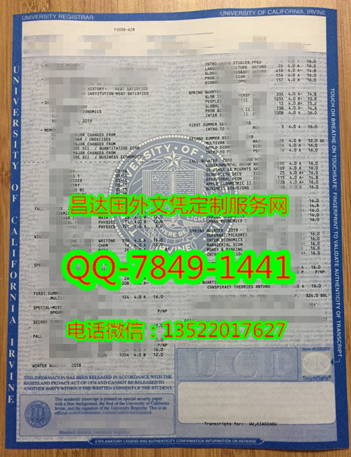 定制美国加州大学欧文分校成绩单University of California, Irvine Diploma