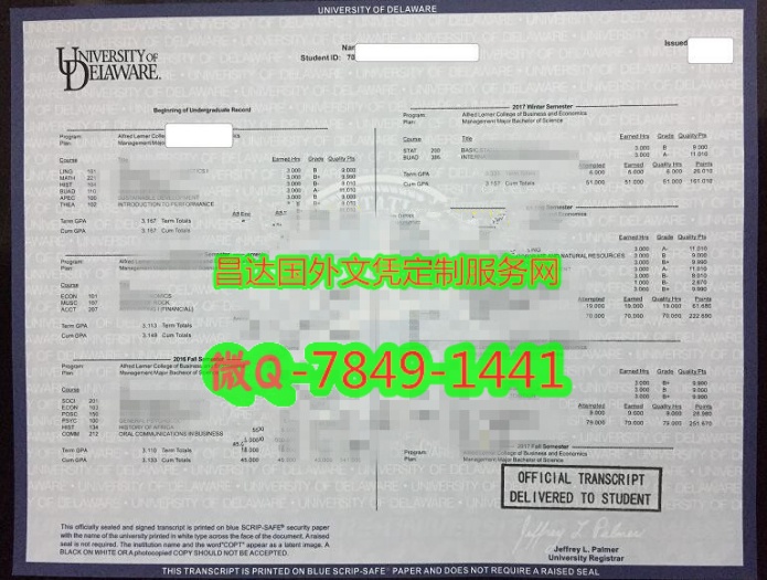 - 定制美国特拉华大学成绩单University of Delaware Dip