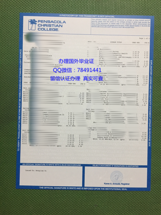 - 制作美国彭萨科拉基督教学院成绩单Pensacola Christia