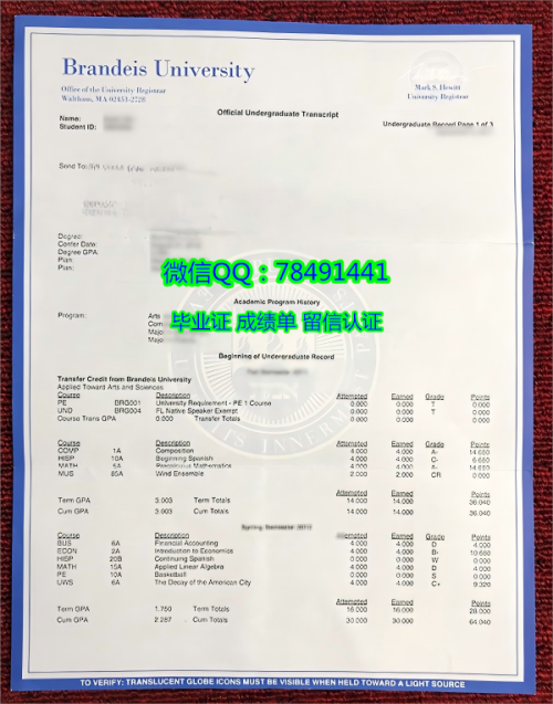 - 定制美国布兰迪斯大学成绩单Brandeis University Dipl