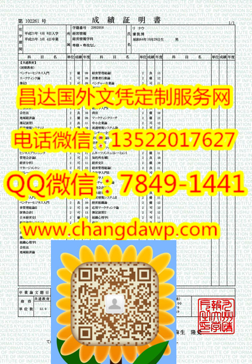 日本九州情报大学成绩单样式制作日本九州情报大学学历认证