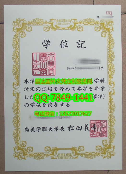 Shobi University Diploma日本尚美学员大学学位记